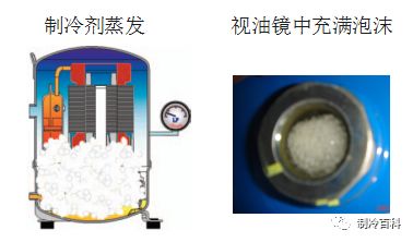 压缩机带液启动时,由于制冷剂蒸发会使润滑油泡沫化,影响轴承润滑等。