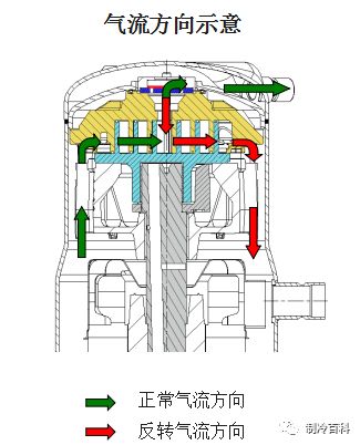 反转是由于外部电源接线相序错误引起的问题。压缩机反向运行,会造成低压壳体内部的温度升高(可能会超过200℃)而造成电机过热烧毁。同时,涡旋反向旋转也会造成涡旋盘的机械损伤。